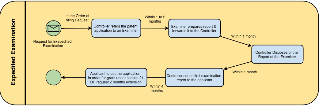 Under the proposed expedited examination system the patent office, after verifying the documentary requirements, will refer the patent application with expedited examination request to an examiner in the order of filing of request for expedited examination. The first examination report will be issued to the applicant not later than 4 months from the date on which the such patent application is assigned to the examiner for expedited examination. As per the new Rule 24D, any false representation made with respect to the eligibility criteria for expedited examination may result in the revocation of patent.